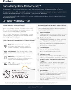 Help patients begin their home phototherapy journey informed and prepared. This downloadable handout explains what to expect after receiving a home phototherapy prescription — from insurance verification to device delivery and training.